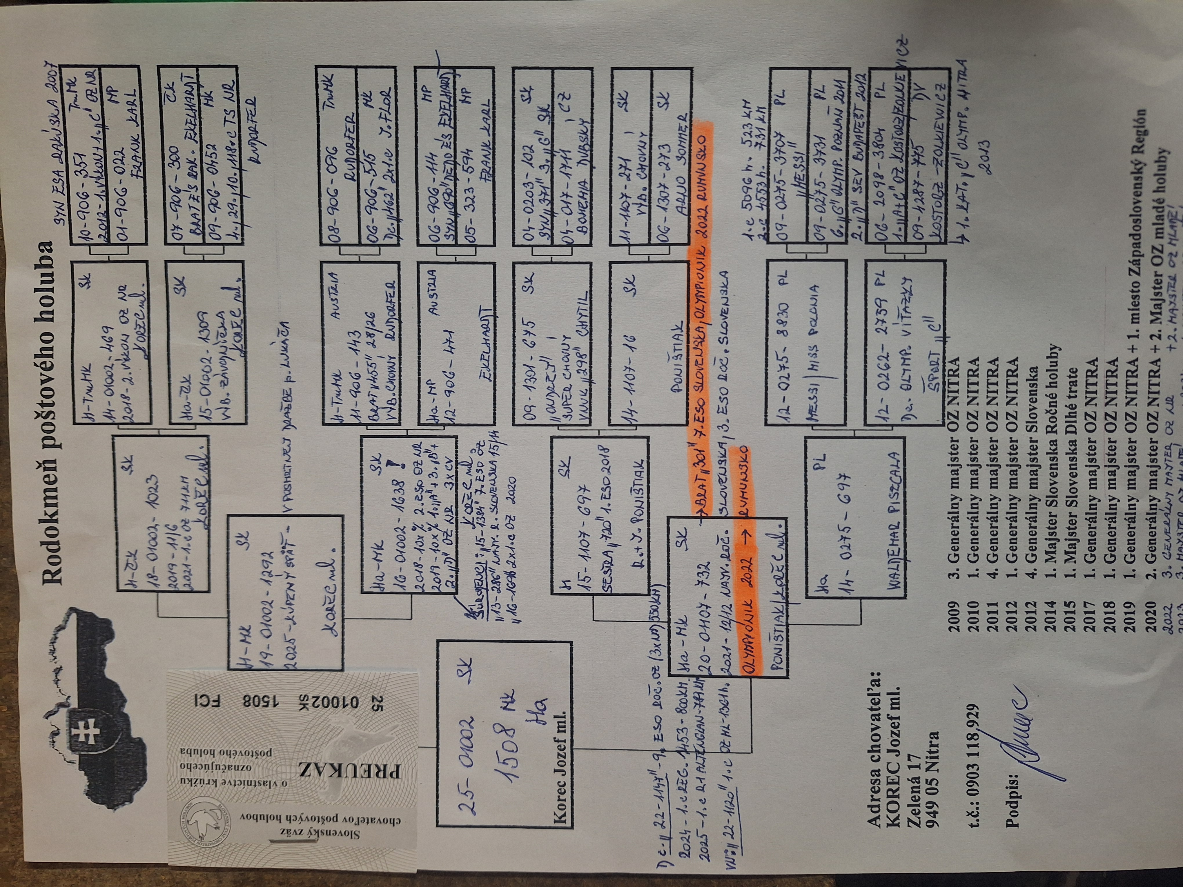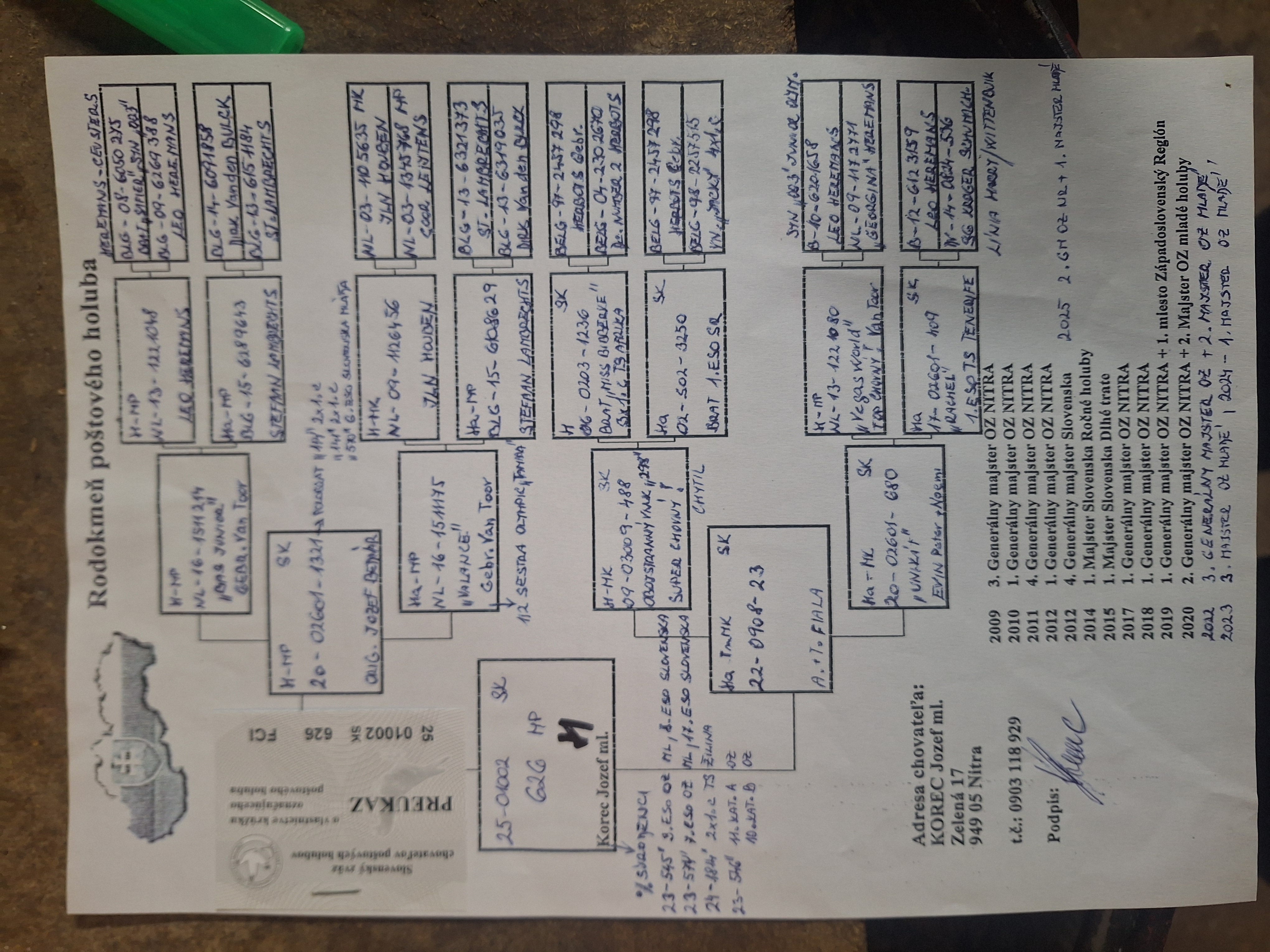 Dobrý deň, ponúkam na predaj neskoršie mláďatá, niektoré už na 7. letke. Základ tvorí stále linka Rudorfer/Ekelhardt a za posledné 3 roky prinesené 2 holubice od špičky Slovenska J.+R. Poništiak a dvaja samci od pána Bednára (Van Toor), ktoré sú veľkým prínosom. Závodníci sú vedení prirodzenou metódou a mláďatá bez zatemňovania. Keďže v OZ NITRA majú chovatelia nakúpené holuby tiež z celého sveta, moja linka dokazuje za posledných 15 rokov, že patrí k špičke... 7 krát Majster OZ NITRA, 5 krát staré (2025 - 2. miesto), mladé 2024 + 2025. 3 krát Olympiáda, 1 krát SEV Budapešť, 2 krát Majster Slovenska ( ročné a DT), v TS Žilina 2024 z 5 závodov 2 krát 1. cena. Odber možný osobne od tohto víkendu, keďže mám dovolenku, termín si vieme dohodnúť určite. Na väčšine mláďat je cena 50e, v prípade Olympionikov a toho naj je cena vyššia. V prípade záujmu t. č. 0903 118 929, s pozdravom Korec Jozef ml.
