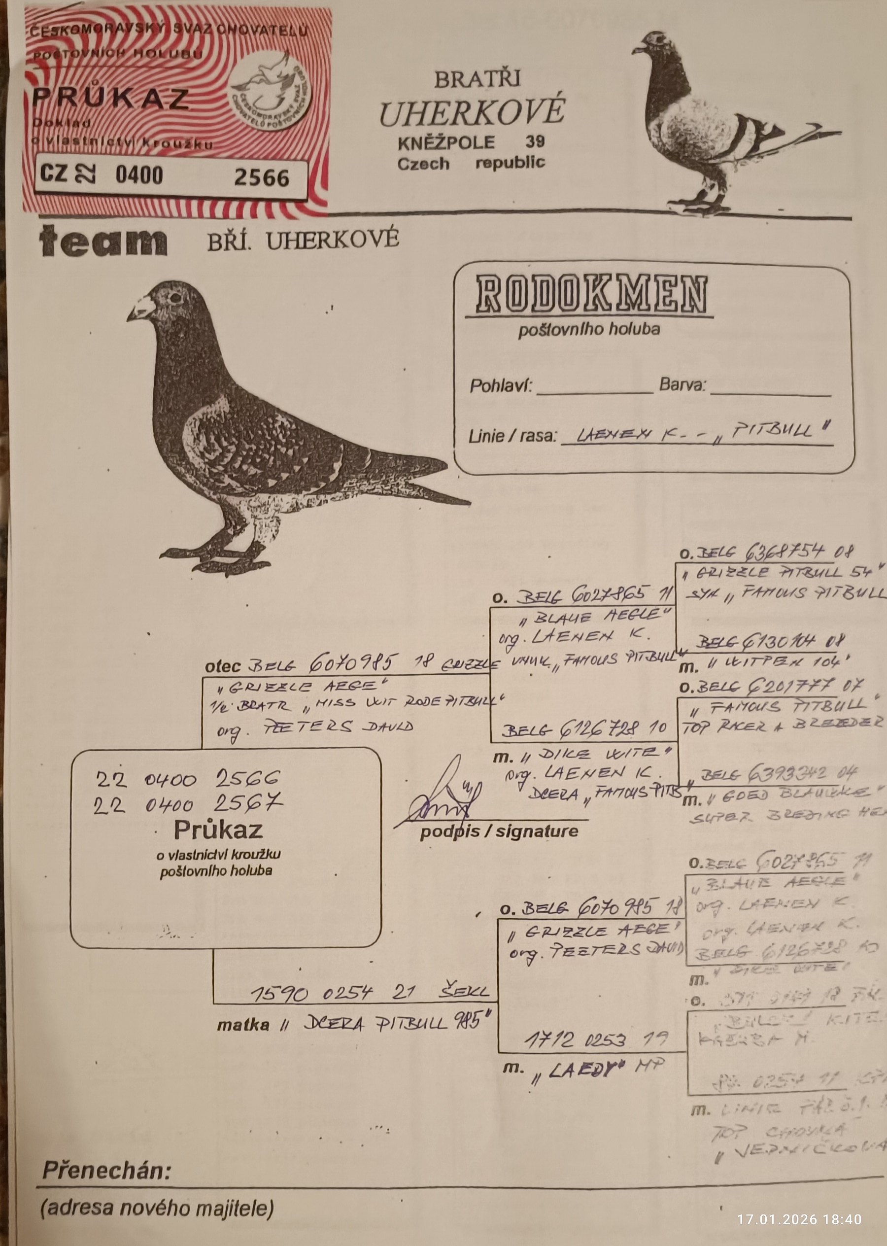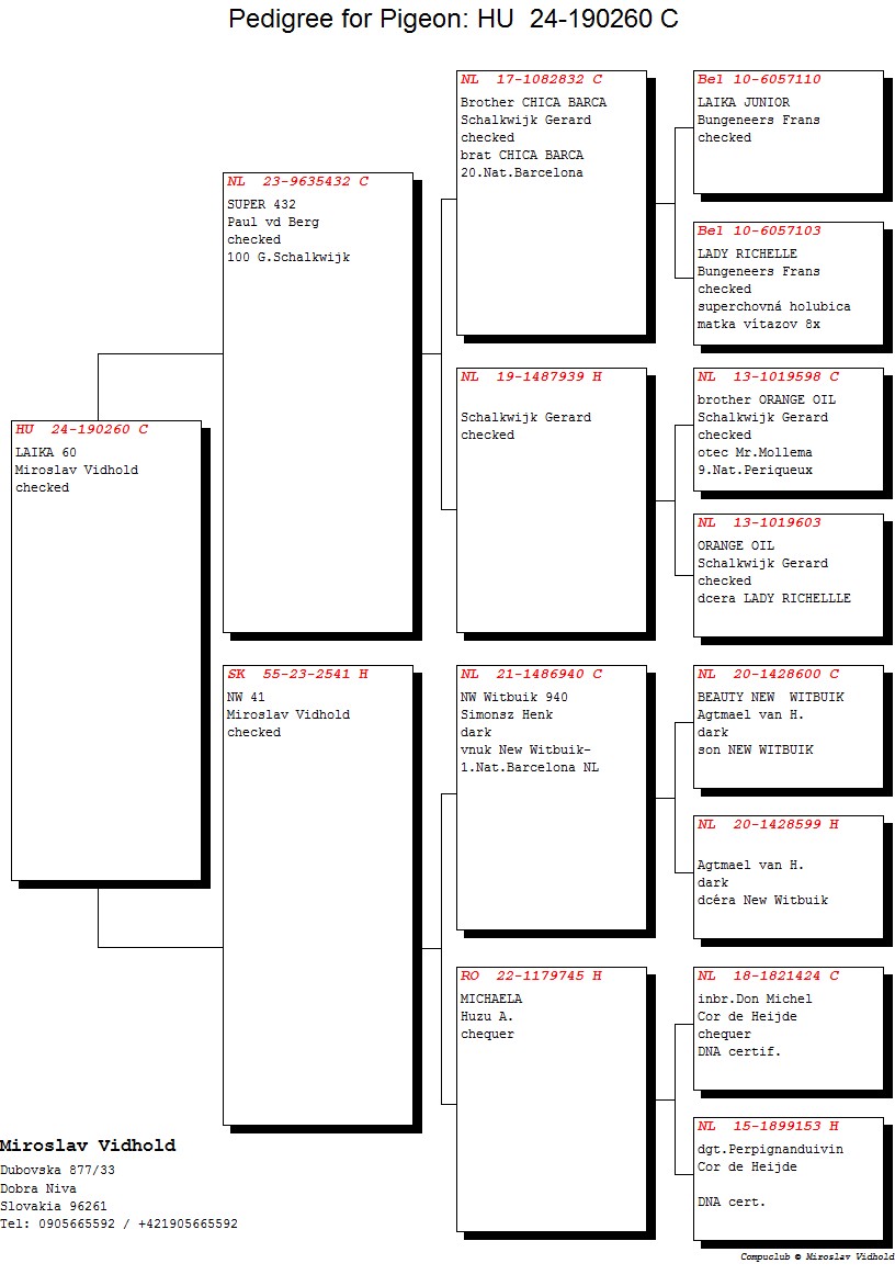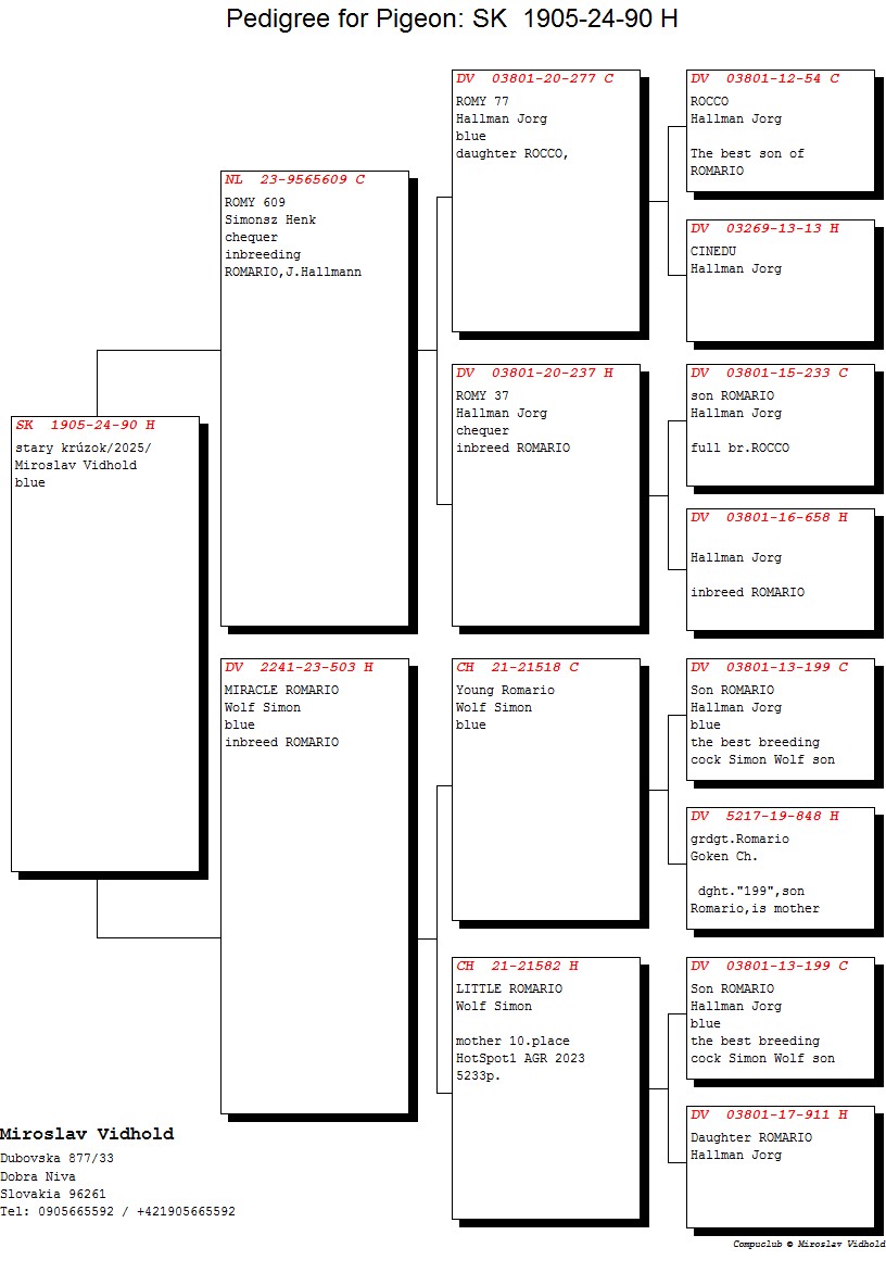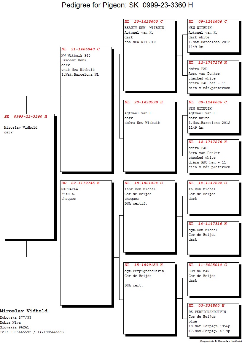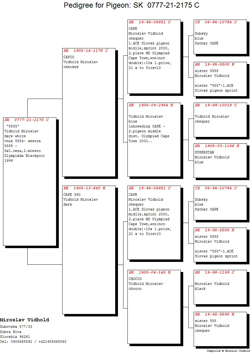 Niektoré rodokmene holubov, ktoré budú ponúknuté