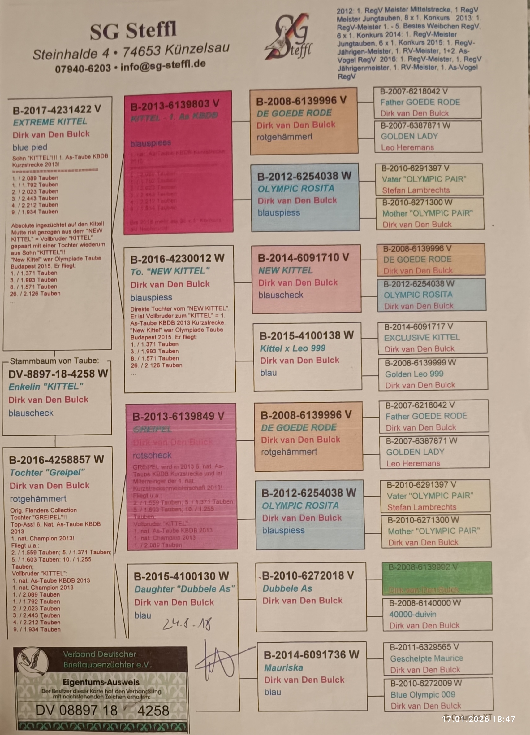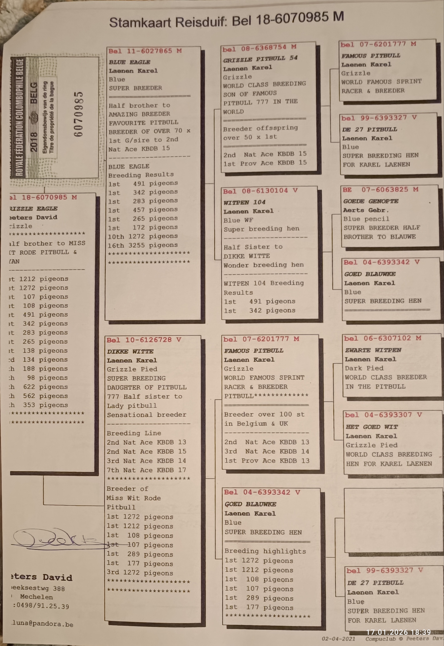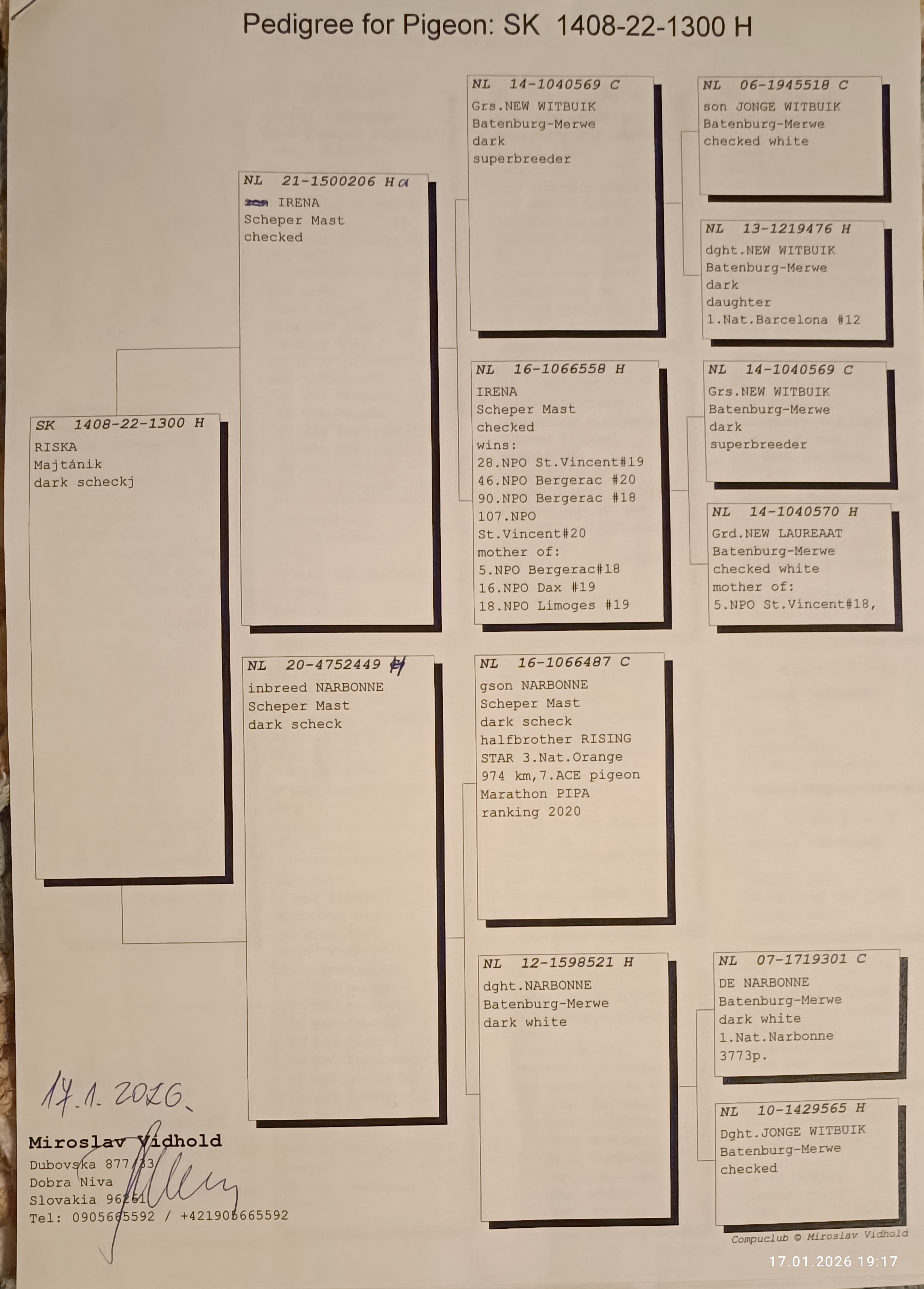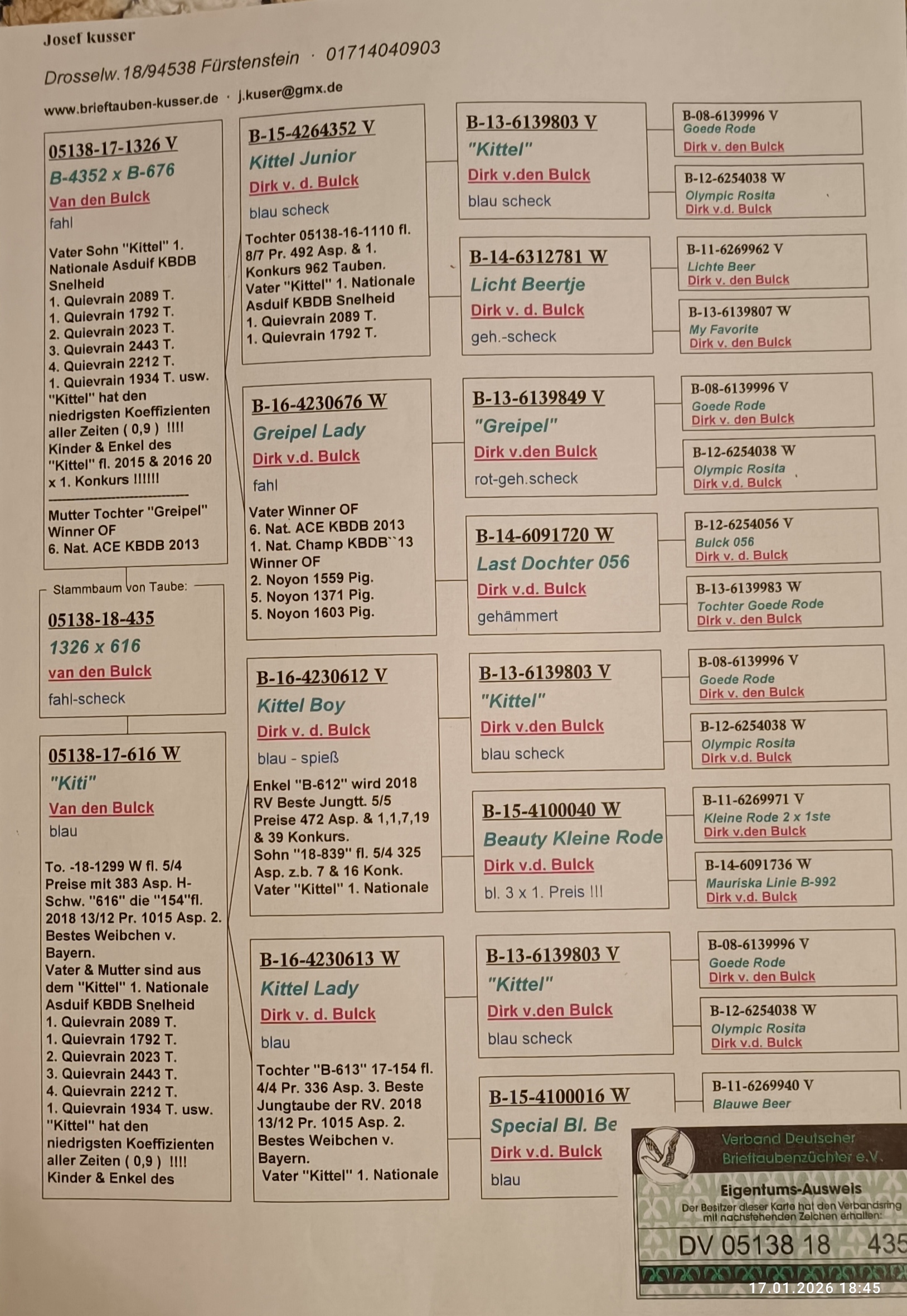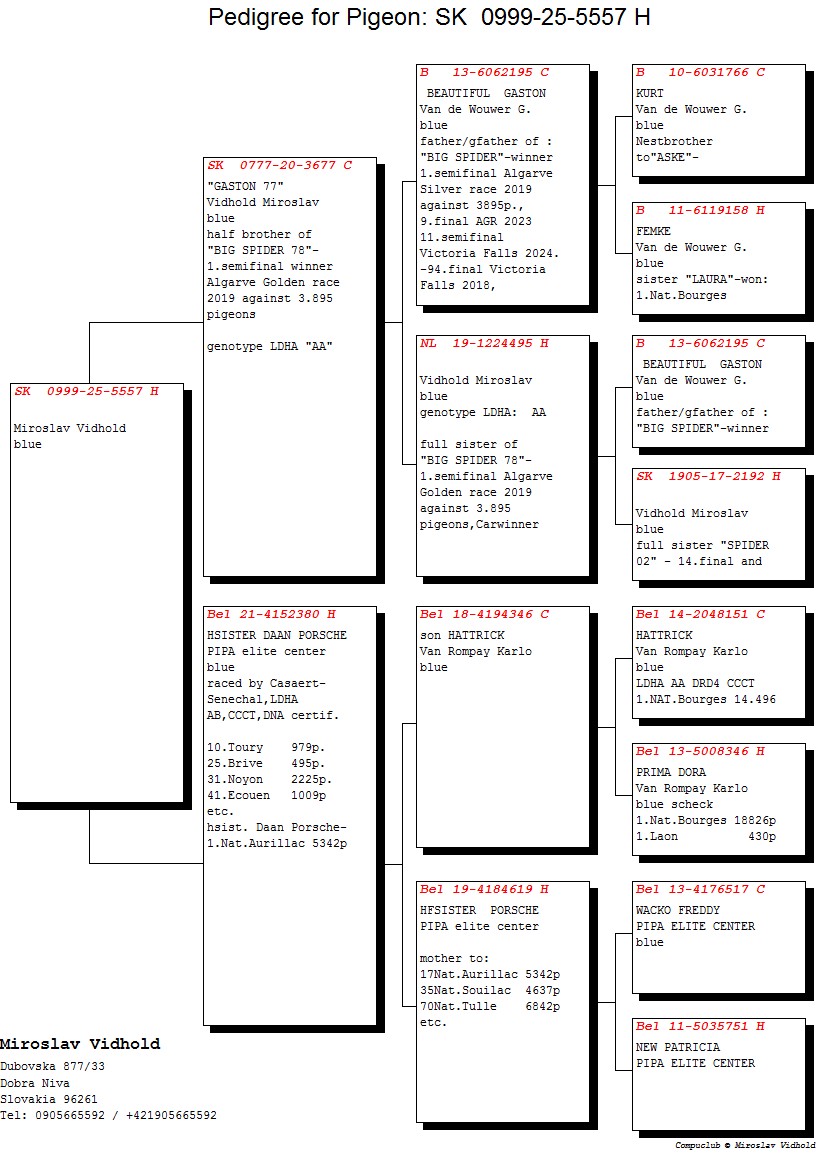 Vážení kolegovia, touto cestou by som chcel upozorniť na predaj mojich základných chovných holubov na vzdialenosti do 350 km ,na Celoštátnej výstave v Trenčíne tento víkend.V ponuke budú dve excelentné holubice VD Bulck ,orig.Vrancken- vnuk Olympic Ricoh,polobrat Super Marie,vkrvnený vnuk Pitbull a pár ich potomkov, pár priamych potomkov ADKA,ADKA II, z línie Ad Schaerlaeckens.Dôvodom je prebudovávanie a zmena orientácie na preteky nad 500 km.V ponuke bude aj ďalších pár originálov a aj pár odchovov holubov pre preteky nad 500 a maratón.Výhodou bude možnosť posúdiť tieto holuby priamo vo Vašich rukách.. Teším sa na stretnutie s priateľmi...👍🏻😉